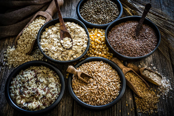 통곡물(현미, 귀리, 퀴노아)과 콩류는 복합 탄수화물, 식이섬유, 비타민 B군이 풍부합니다.