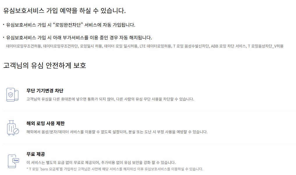 - 유심보호서비스 가입: 유심의 무단 사용을 방지하기 위해 가입을 권장합니다.